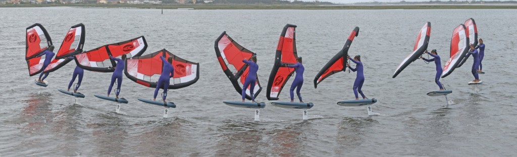 Light wind is your friend when learning this. Once you’ve got the duck gybe nailed, you’ll be showing off to all the grannies on the sea wall in any wind strength, but less power will make a massive difference in getting the wing into the correct position to duck and then back to riding. As such, it increases your chances of claiming it.