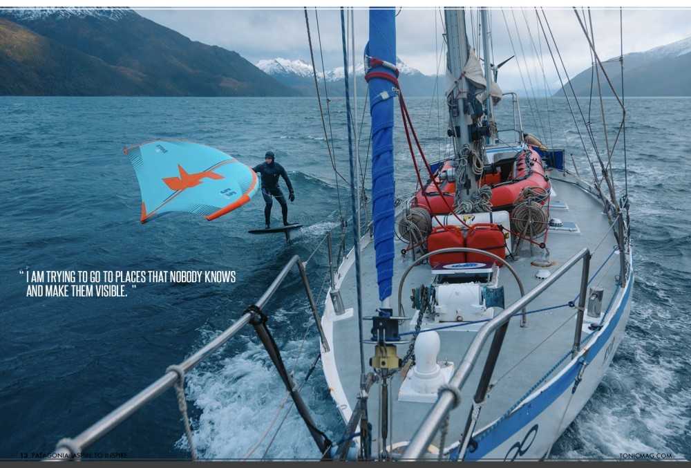 He was lucky to wing foil with whales in the Beagle Channel, and later became the first person to foil Cape Horn and ride around the untouched glaciers of southern Chile. Nonetheless, he isn’t on a quest to “be the first” anywhere. Rather, he wishes to foil for the ocean and advocate for plastic-free waters and cleaner marine ecosystems.
