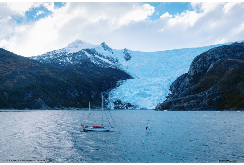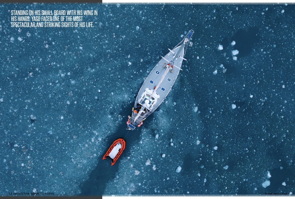 Alone, standing on his small board with his wing in his hands, Yago faced one of the most spectacular and striking sights of his life. Navigating straight towards the 80m-tall ice walls, he felt entirely overwhelmed by this stunning UNESCO World Heritage Site. He ultimately became the first person to foil in front of the iconic glacier, but this turned out to be so much bigger than writing his name in the history books.