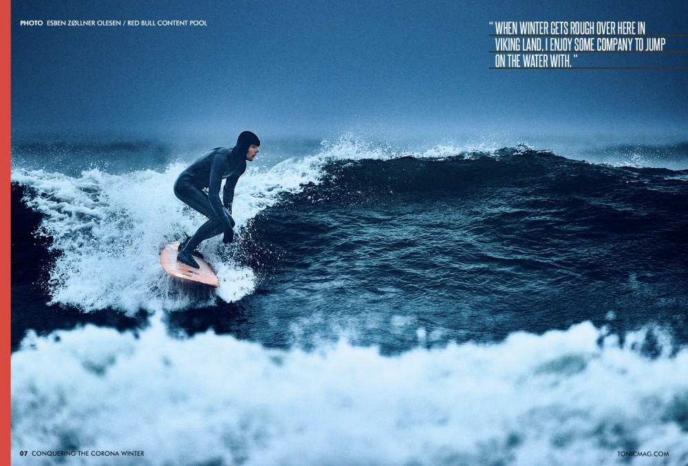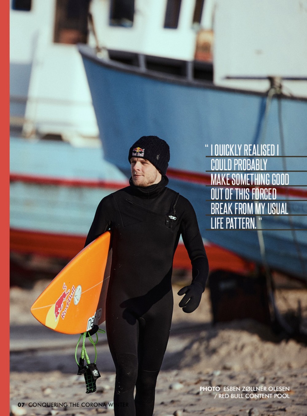 Legendary waterman Casper Steinfath joins us this issue to share with us his experiences of being stuck in Denmark for the winter. Usually, Casper would be travelling the world surfing epic waves, but instead of reaching for the sunscreen this winter, he was reaching for the rubber!