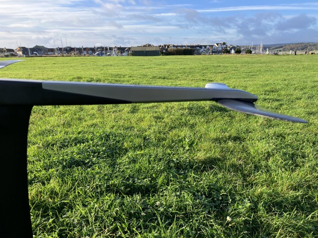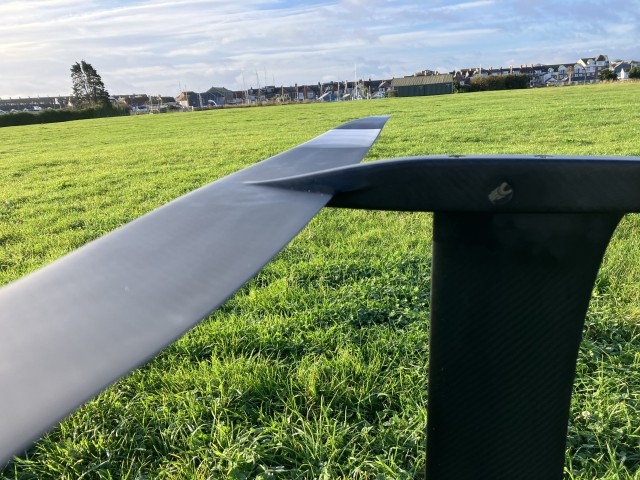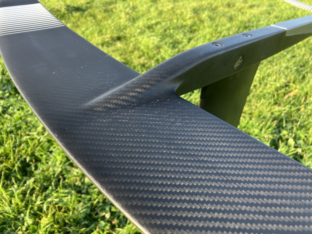 The distribution of the anhedral curve of the H-SERIES MKII has been carefully considered. The central section on either side of the fuselage is fairly flat, presumably to maximise the lift of the central section of the foil, which has the maximum chord. The more aggressive anhedral curve begins around 60% along its span before flaring the wingtips back up. It has a moderate sweep to the profile and has a significant chord reduction along its length, resulting in minimal profile area at the wing tips.