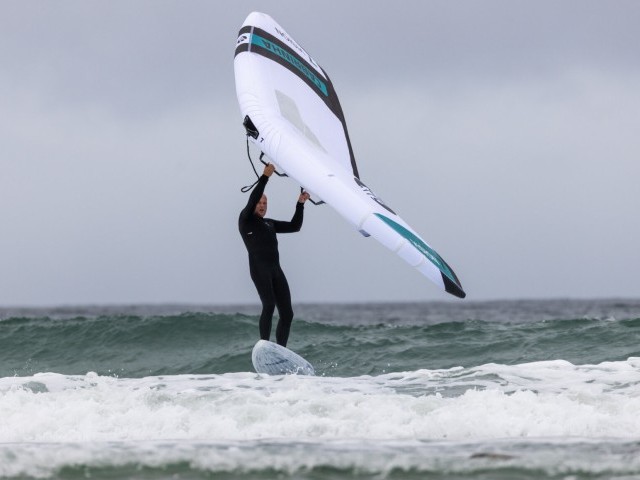 From an efficiency and light wind efficacy perspective, the Swift delivers. Its increased length and reduced width deliver early board speed with minimal wing power compared to a comparable volume wing board with a traditional outline. It is quick to accelerate and directionally stable thanks to its length and the deep V in the nose. This takes a little getting used to but is of great benefit once used to prevent the board from drifting downwind when powering up to try and get on foil. Given that I was on a board that was as good as equal in volume to my weight in kg in a wetsuit, the Swift is incredibly stable considering its low width. Lowering your centre of gravity thanks to the aggressively recessed deck and the flat base and hard edges in the rear half of the board go a long way to eliminating rolling/corking motions.