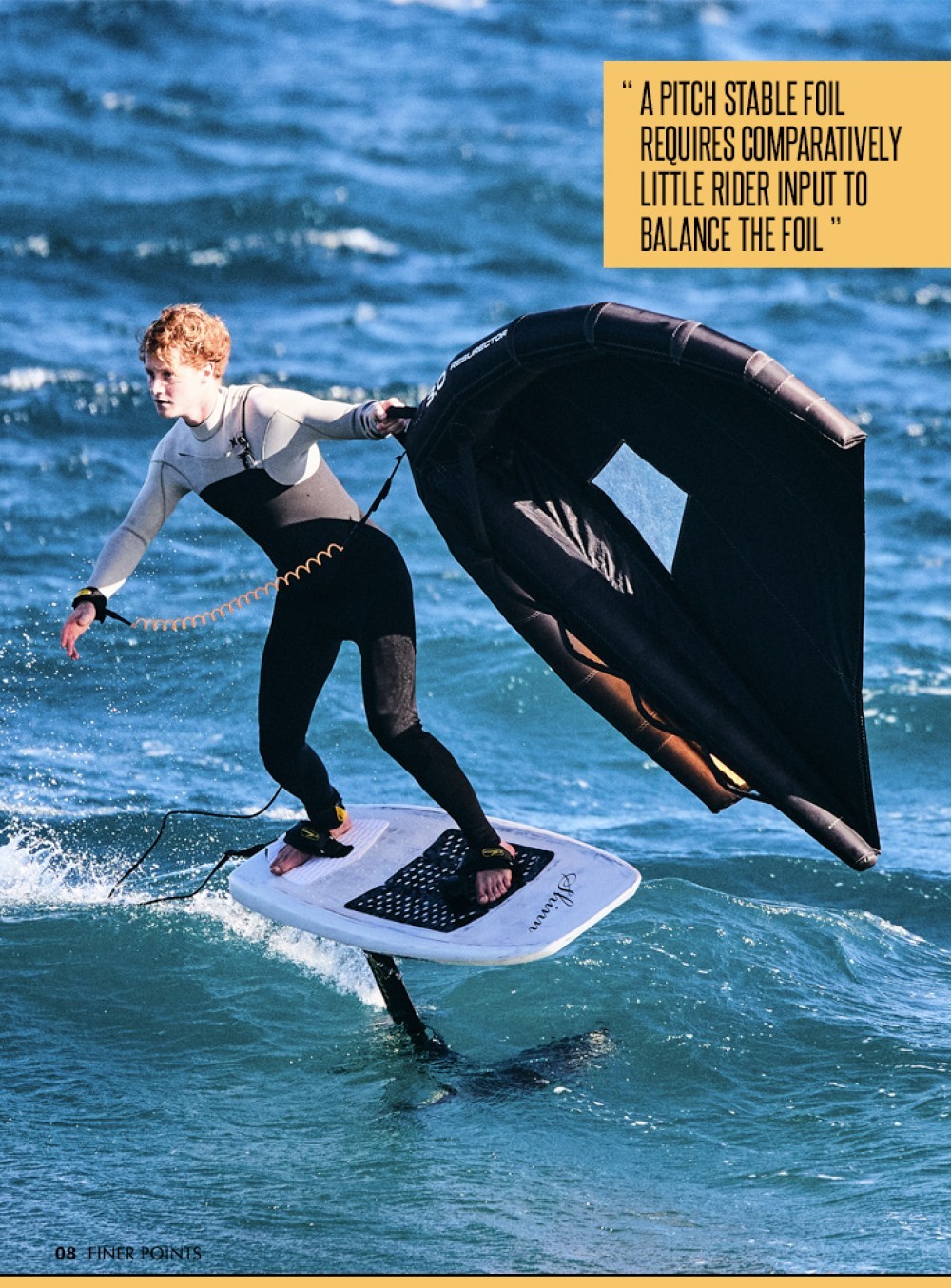 A foil with poor pitch stability requires fast and frequent weight adjustments from the rider; this is particularly noticeable when riding a swell or entering a transition. A pitch stable foil requires comparatively little rider input to balance the foil during speed variations. One of the ways to achieve more pitch stability is to increase the distance of the stabiliser from the mast, and on this, everyone is agreed, however exactly WHY increasing this distance has that effect is more hotly contended.