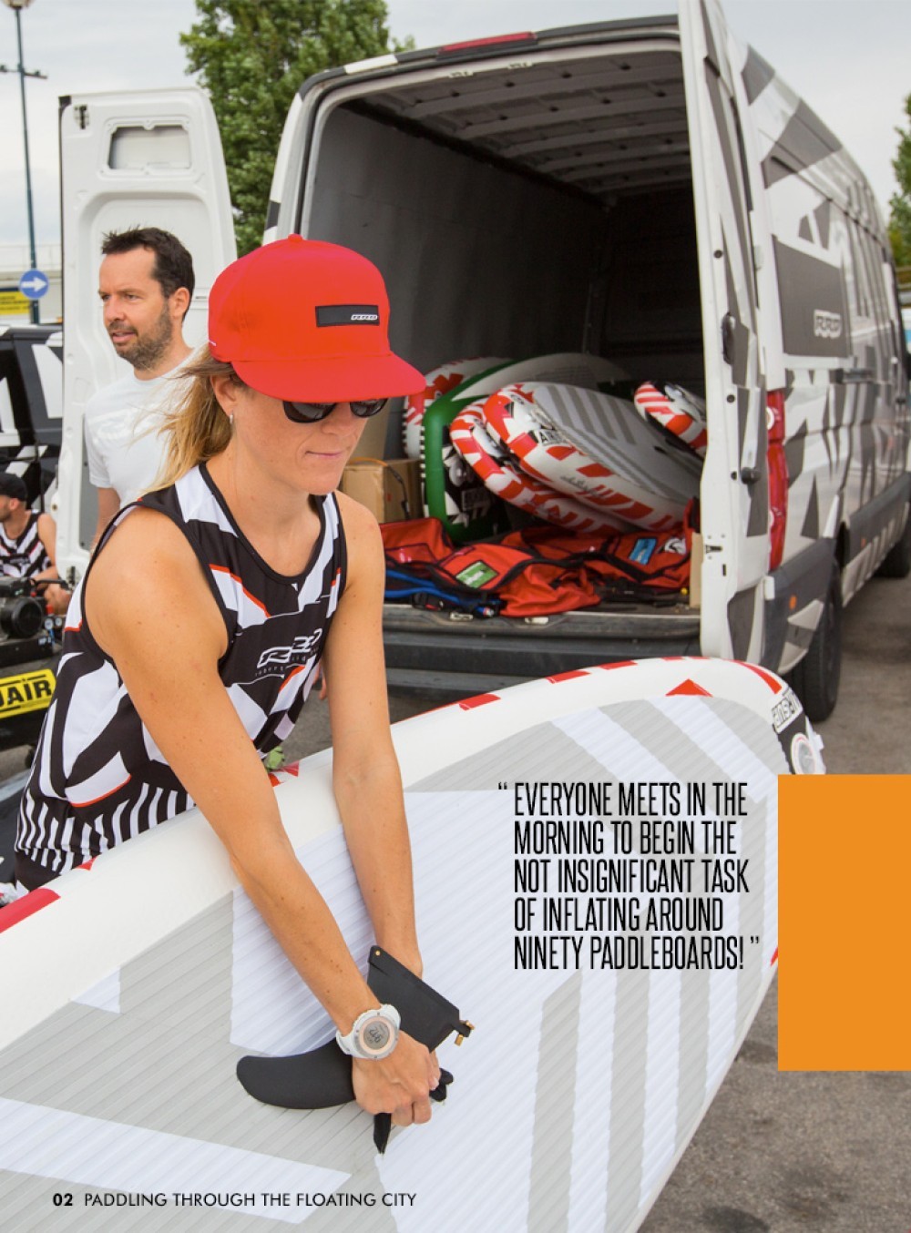 The event starts on a quay just to the outskirts of the city centre where everyone meets in the morning to begin the not insignificant task of inflating around ninety paddleboards! With people having flown in from around the world and travelled from every corner of Italy for the event, the inflatable SUP is the board of choice for convenience and practicality for the majority. RRD also loans out a considerable number of boards for those who haven’t brought their own.