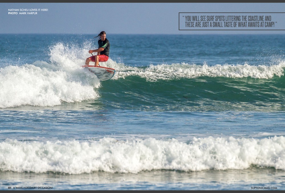 I think that’s the real beauty of this place, the consistency the swells from the Pacific Ocean offer. It’s very rarely flat and even on the smaller days you’ll have decent period swell with plenty of power if you want it. In the camp at the beach break it is always a little mellower and perfect for warming up and learning, then as you progress you can step up to the Bombora and The Point knowing that the waves won’t catch you out, but roll in right on cue over and over!