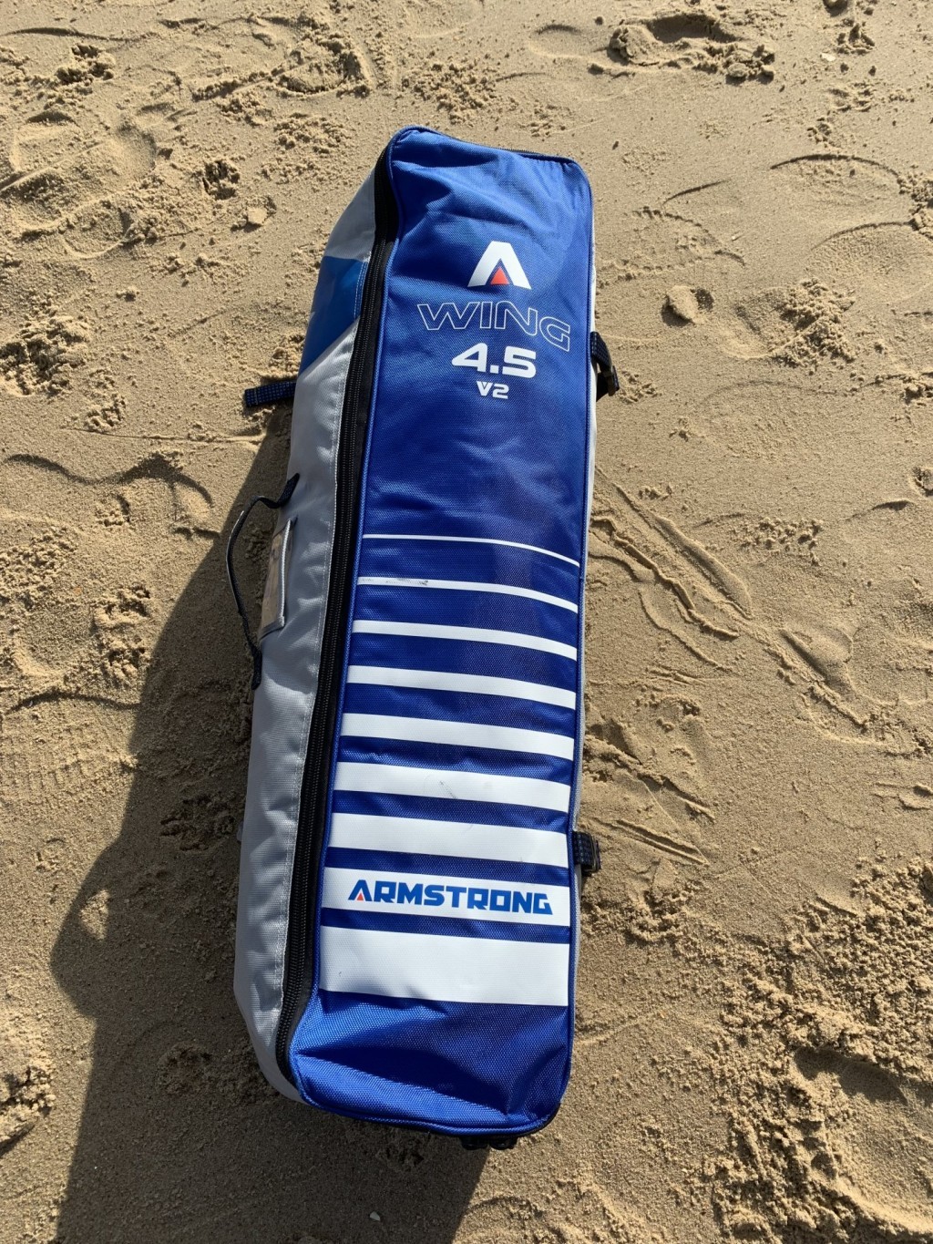 While Armstrong doesn’t have the years of experience that some of the kite brands have had it doesn’t show. The V2 A-Wing is a robust high-performance wing with all of the features we’re looking for when on the water. It comes complete with a carry bag & leash in five different sizes: 2.5m/3.5m/4.5m/5.5m and 6.5m. Here on test is the 4.5m, a good size for covering most conditions.
