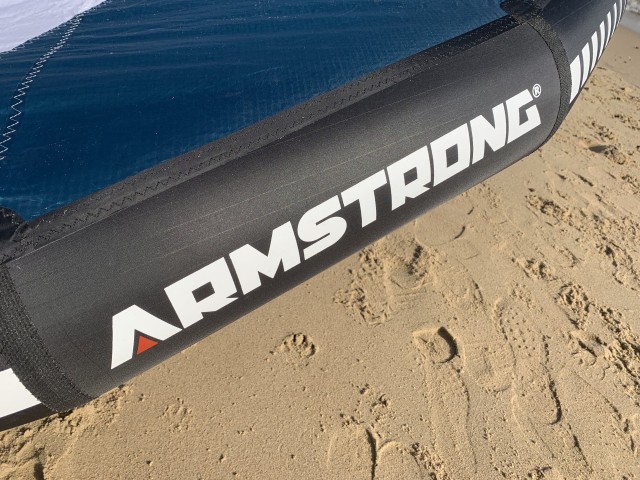 Out of the bag, it looks well finished. Armstrong has mirrored their attention to detail as in all of their products. The leading edge has anti-abrasive patches to protect it from the beach, the canopy has a crisp feel and the stitching is of high quality.