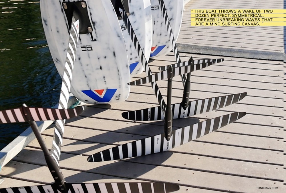 When I first saw the WKT line, I was a tad skeptical. Armstrong had never made a board so thin before and I was concerned about its durability. Knowing how previous gear from Armstrong handles, I had faith that it was going to be the next big thing. My prediction was correct and the board completely blew away my expectations. Covering the board from nose to tail, carbon lines on the deck and underbelly of the board to make it very light and super durable. Perfect for towing, we put the WKTs to the test and cruised behind the Sternwheeler. Being able to be on a new board that was completely different from any of the other foil boards I had tried was an absolute blast. The best thing I found about the new boards and the Sternwheeler in general was how you could go from a chill standing position to then ripping back and forth with all your buddies on a seemingly endless wave.