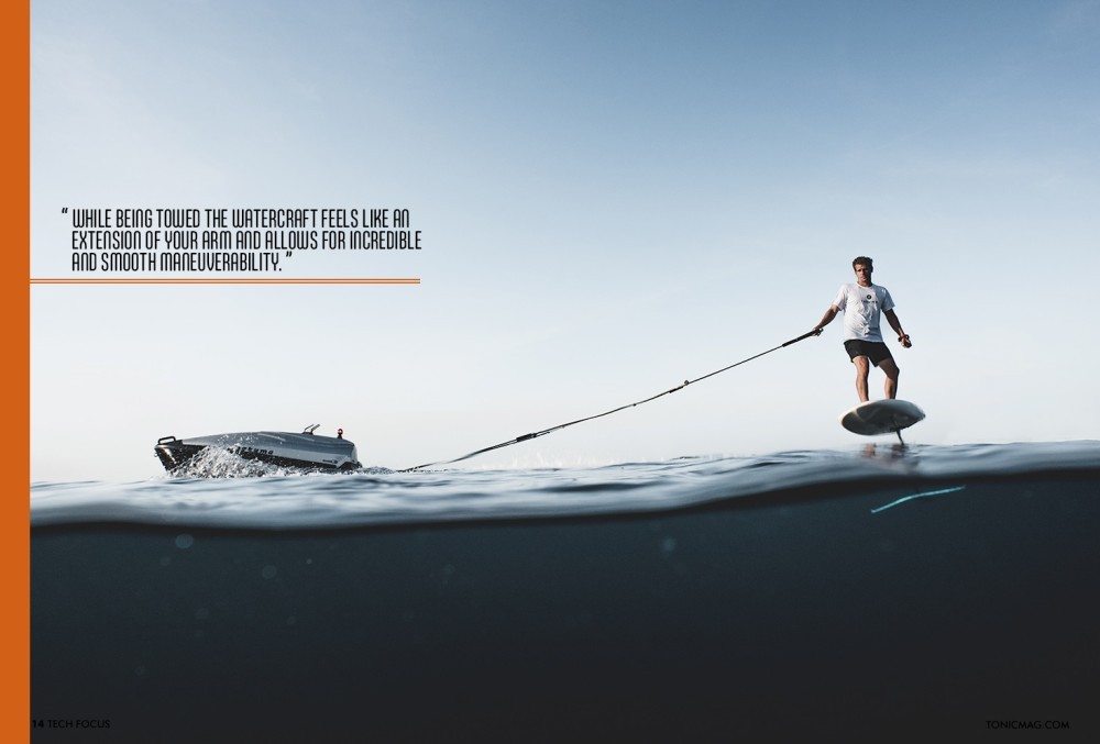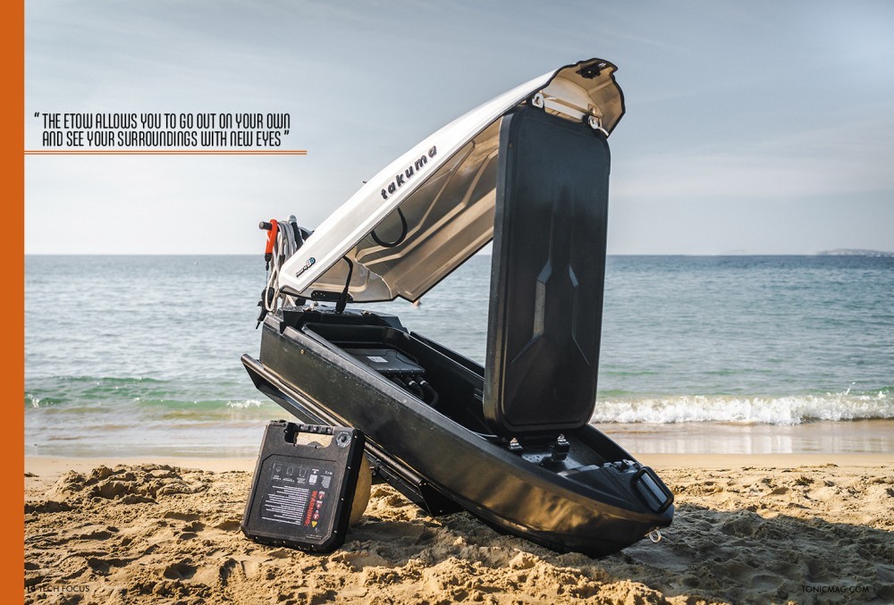 And so at Takuma, we became the first in creating the eTow, a self-controlled electric towing watercraft, that allows you to extend your playground, explore unknown spots and discover new sensations.