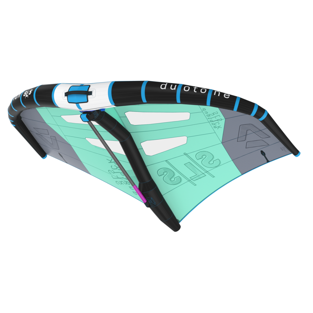 For 2022, the Slick SLS has undergone a complete redesign, including a new outline. These changes improve luffing stability while surfing waves and during downwinders, as well as enhancing power and hang time for jumps. The modified design also reduces drag and provides clearance for the wingtips.