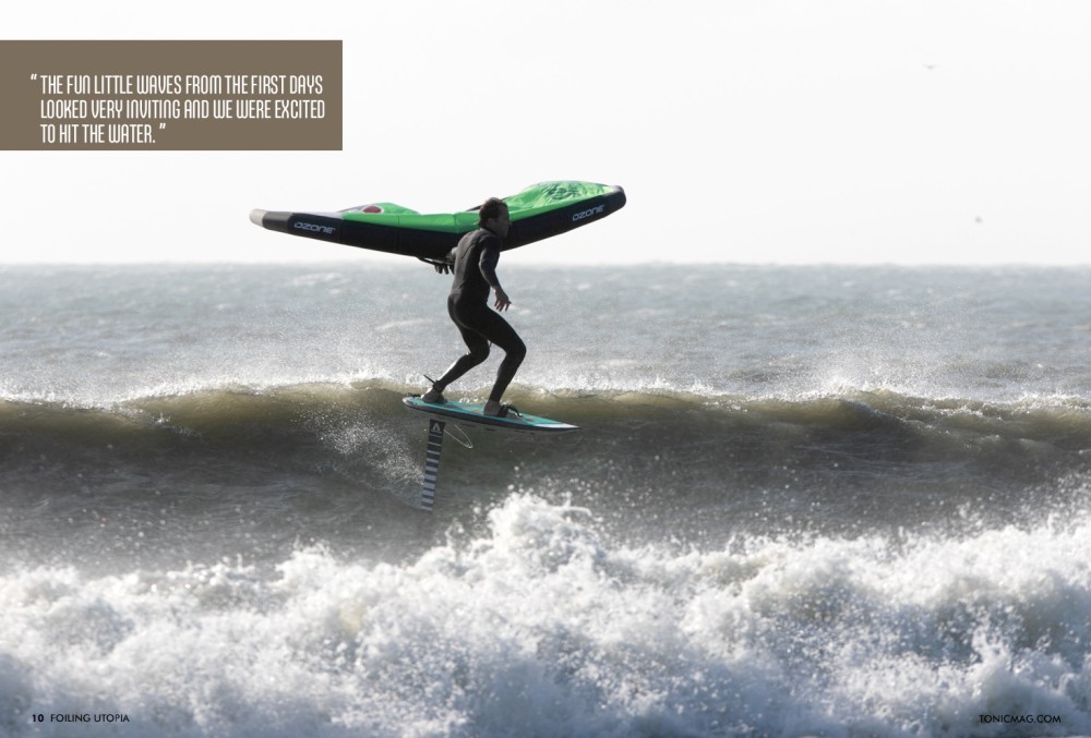 On our arrival day, the sky was a bit cloudy what made the wind light and offshore. Good enough to jump in the water for short arrival wing and surf sessions. After a long trip to get there, it was nice to have a quiet start to arrive and to process the first impressions. Marc was delighted not only to catch up with Martin, meeting his wife but also with a first tow-in foil session in which Martin would tow him into some first waves at this new spot for him. Ideal to get to know the place, plus important getting some practice in for the bigger days to come.