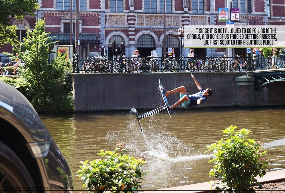 No wind or waves for days. Too much energy, we have to get out on the foil, it’s driving us insane. In an impulse, a plan is made to see if we could go foiling in downtown Amsterdam, the capital of the Netherlands. It’s well known for its many canals that run through the city. It’s already a busy city flooded with tourists, but summertime takes this to a new level. Amsterdam is also known for its liberal culture, the redlight district, coffee shops, and smart shops.