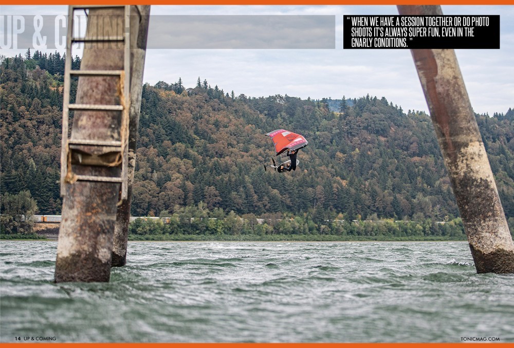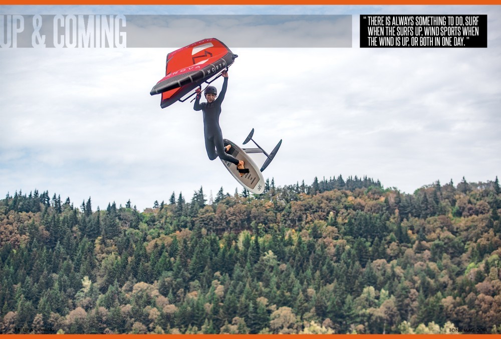 Yes, Jesse Richman is my mentor. Jesse as a mentor and as a friend is the most awesome thing ever, he is so fun, energetic, and positive. He has lots of information to share, and all around he is amazing to be a team rider with. The connection was made through my parents, they have known Jesse since he was a little grom and when I was learning to kite and the north next GEN program came up, Jesse chose me as his grom and taught me a lot about kiting. I have become way better since we first started and I have helped him some with wing foiling. When we have a session together or do photo shoots it's always super fun, even in the gnarly conditions. I am now on the North International Team for wing foiling and it's really great. The whole team is super supportive.