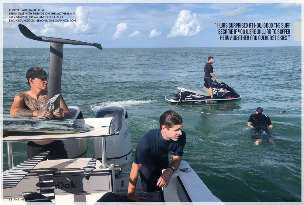 Absolutely. I was just looking for board speed in a surf-starved environment. I was surprised at how good the surf became if you were willing to suffer heavy weather and overcast skies, which is where kitesurfing was a perfect fit. What is considered garbage for most was actually full of frequently overhead magic days and exploration. I thank kitesurfing for getting me far out past the lineup and into the typically inaccessible wilderness breaks on the horizon that are in abundance here in Florida. This led me to realise the appeal of surfing alone, and the importance of self-reliance.