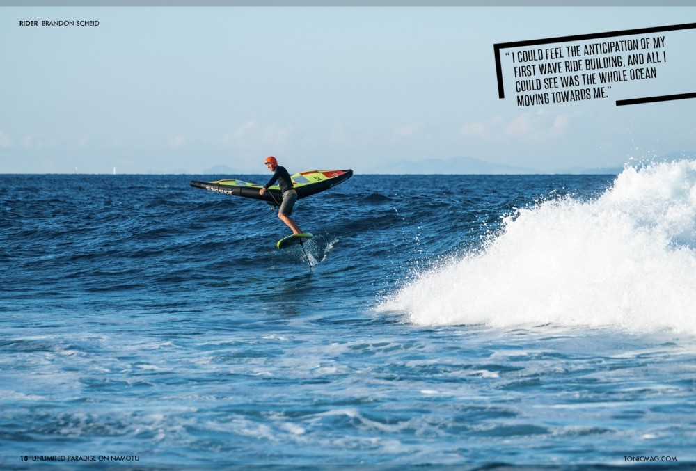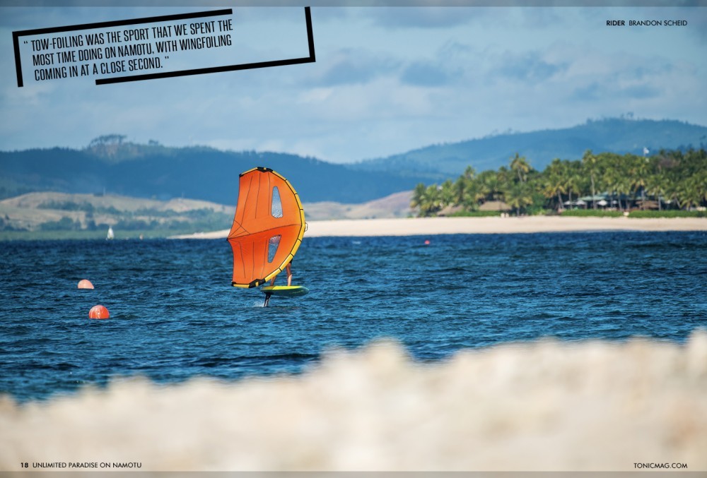 Tow-foiling happened right out in front of Namotu at the wave you could watch from the breakfast table, Namotu Lefts. And because we tow-foiled Namotu Lefts so much, when the wind came up, and it was time to wind-sport, we could wing with confidence over the sharp coral, having practised our turns and gotten to know the wave relatively well on the wing foil.