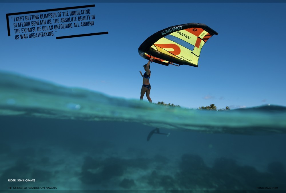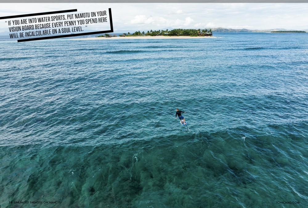 As soon as we set foot on the island, it was go time. The thing about Namotu is that you never want to miss a thing. Oh, there’s a wave breaking? Better paddle out. Someone’s going snorkeling? We should probably tag along. Now the wind is picking up? It’s go- time for winging! There’s no way you want to miss out on a session because it’s just that good. This means that for the better part of the day, you are in the big blue, also known as the Pacific Ocean. Throughout our time on Namotu, we could be found in the water for six-plus hours every day.