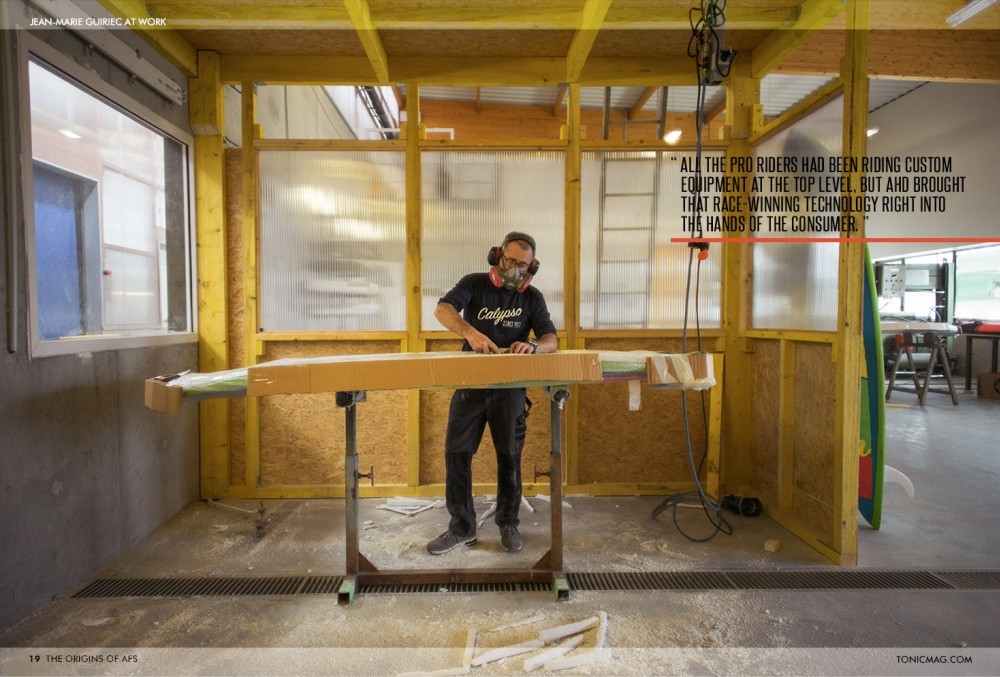 French Champion Antoine Albeau and Jean Bouldoire joined the team, adding shaping expertise. Bruno André, a competitive windsurfer and Waterman, also became part of AHD's R&D team and has since grown to become a Partner, continued R&D expert, AFS Brand Manager and coach.