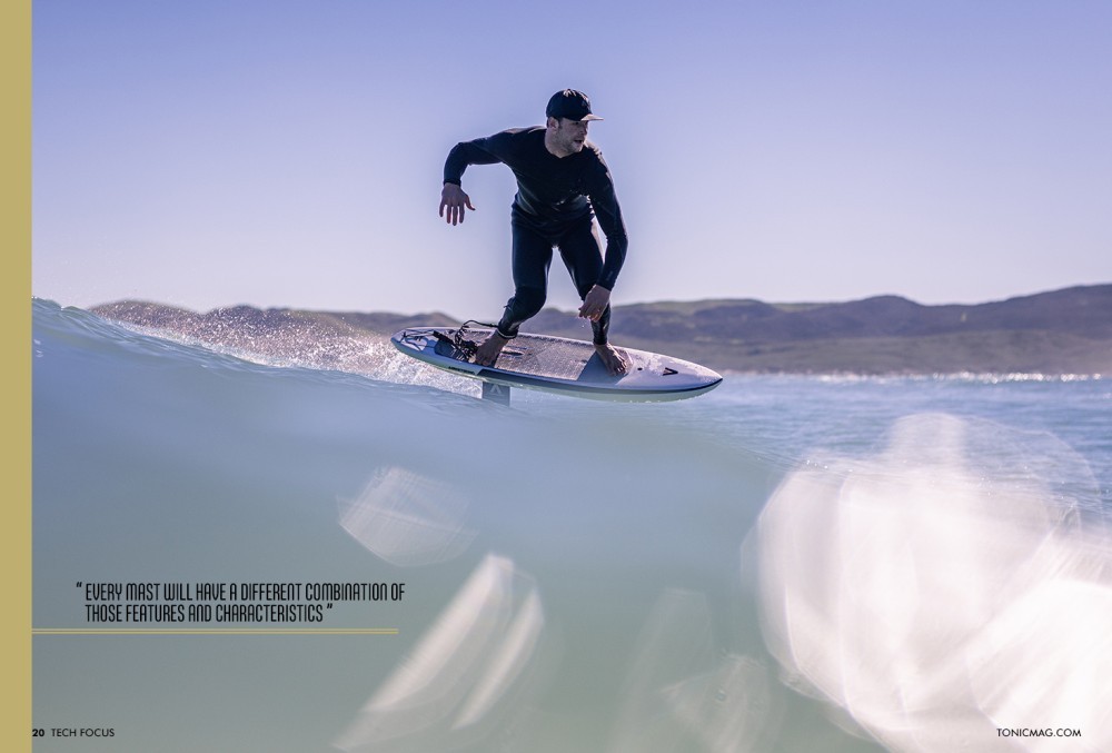 Section shape and thickness, chord, taper, and many other factors contribute massively to how a mast or fuselage (regardless of material) ultimately feels on the water. Those determine responsiveness, top speed, stability, recovery from ventilation, etc. Every mast will have a different combination of those features and characteristics, and one might matter more to you than another if you’re prone to surf foiling versus cruising on a wing.