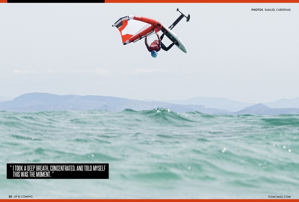 I've faced many challenges while competing on the world tour. Last year, losing the overall podium was hard for me, but the toughest moment was at Tarifa in the final. I crashed the first four attempts out of seven, and only three tricks counted. So, I had to land my following three tricks. I took a deep breath, concentrated, and told myself this was the moment. I started my last attempts with a hard trick that scored well: 1080. I knew that I could land it often. It happened, and then I did a nice backmobe, almost foil to foil. For the last one, I did a front flip 360, which was the trick when I was the most stressed in my entire life.