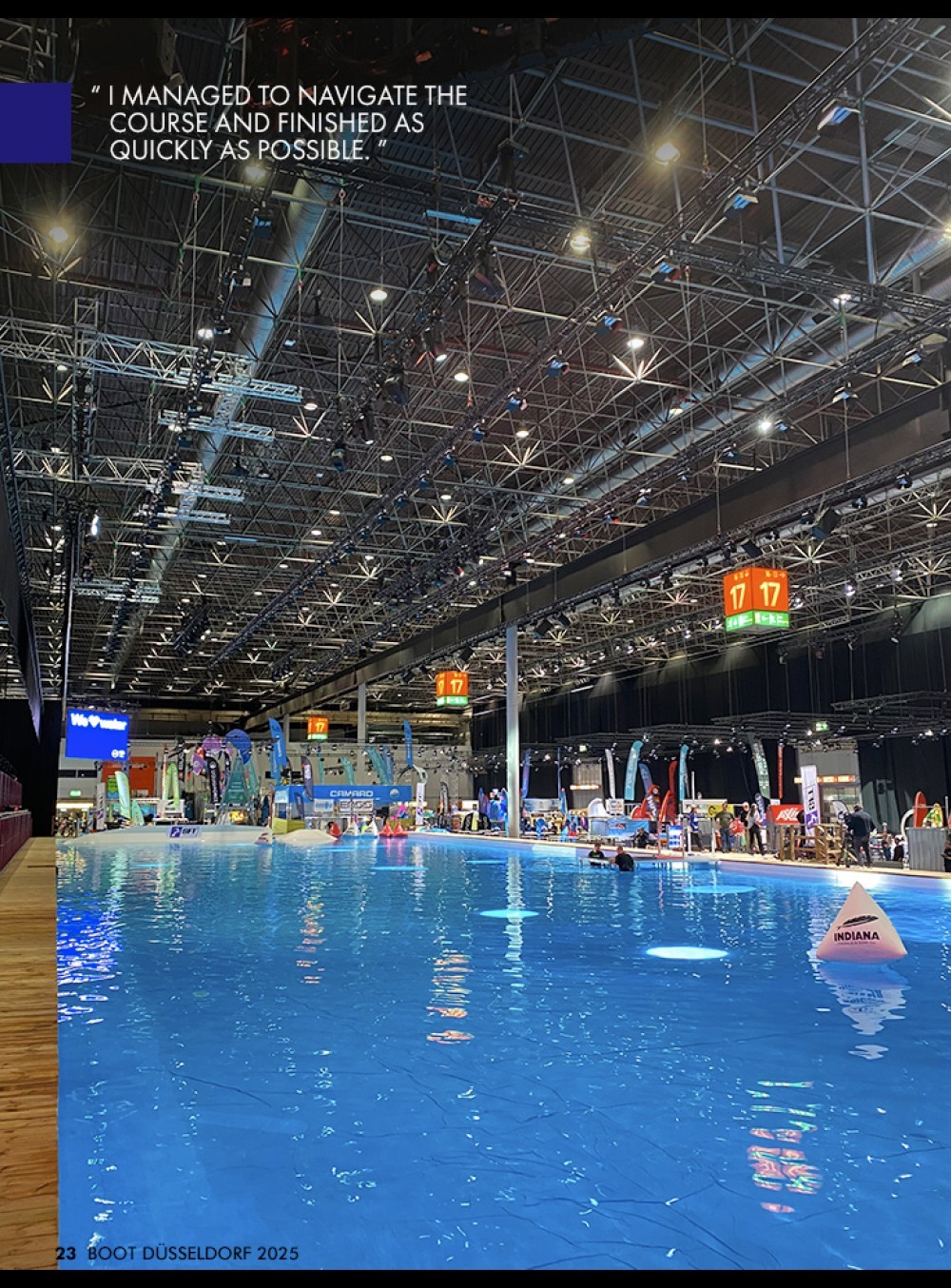 The action took place in a large pool measuring 20 by 60 meters and less than a meter deep, with powerful fans creating wind. Viewers were just steps away from the riders, making the excitement palpable. The close proximity of the crowd made it an incredible experience for the competitors. Hearing the cheers and shouts from the audience gave an extra boost of energy, motivating everyone to compete at their best and race as fast as possible.
