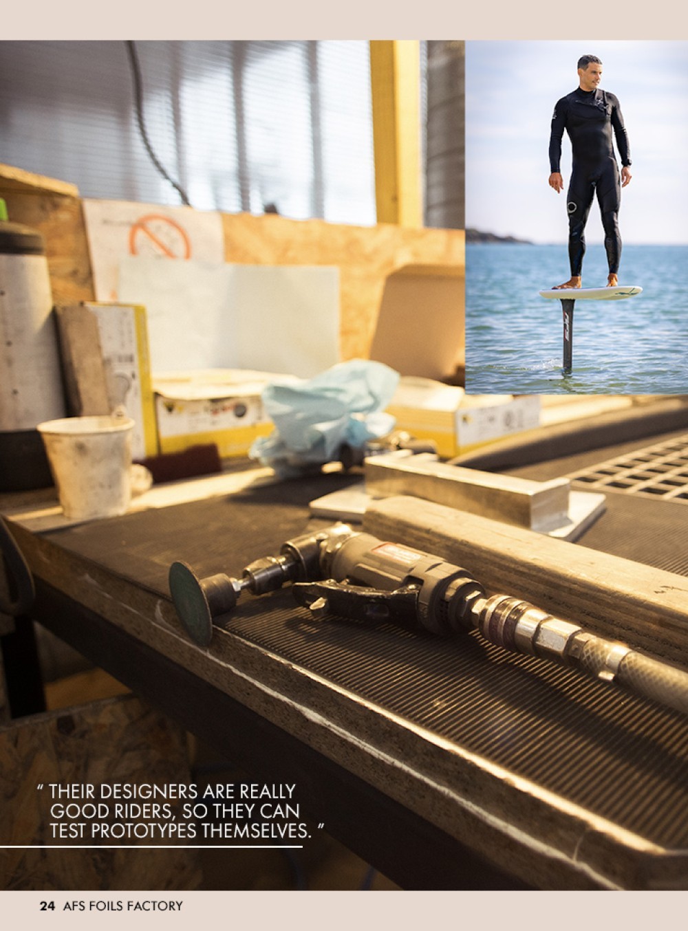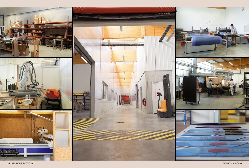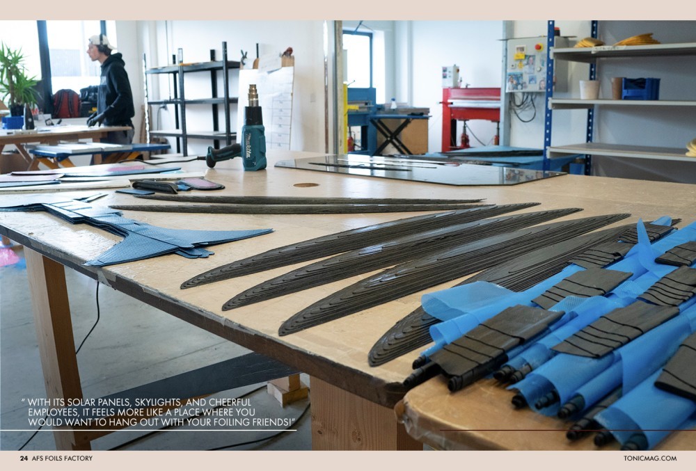 The AFS factory is very different from what most people imagine when they think of a factory. With its solar panels, skylights, and cheerful employees, it feels more like a place where you would want to hang out with your foiling friends!