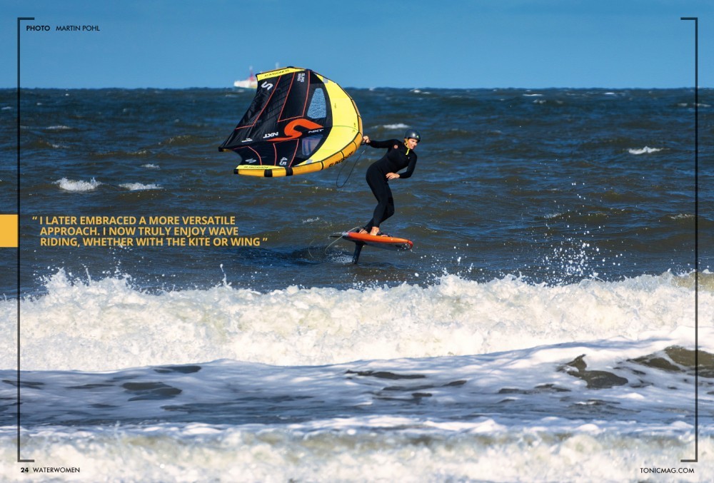 How has your background in skiing and kiteboarding influenced your style and approach in wingfoiling? Did you find learning it easy, or was it a struggle?