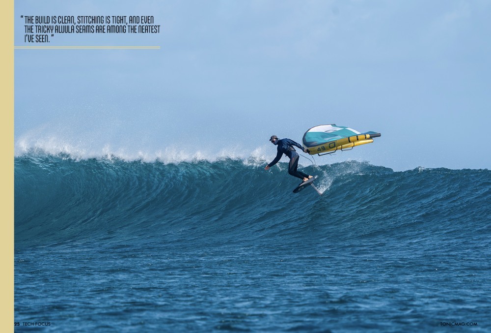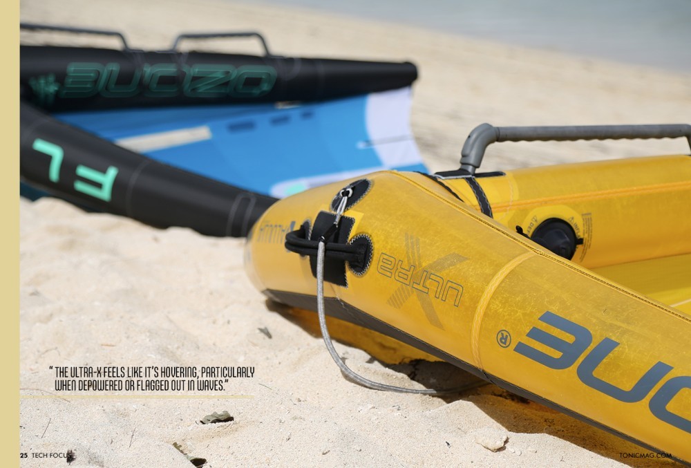 That stiffness means more efficient pumping, cleaner energy transfer, and a wing that resists distortion under heavy load. The weight saving is also real: while the paper difference in grams isn’t enormous, in practice, the Ultra-X feels like it’s hovering, particularly when depowered or flagged out in waves.