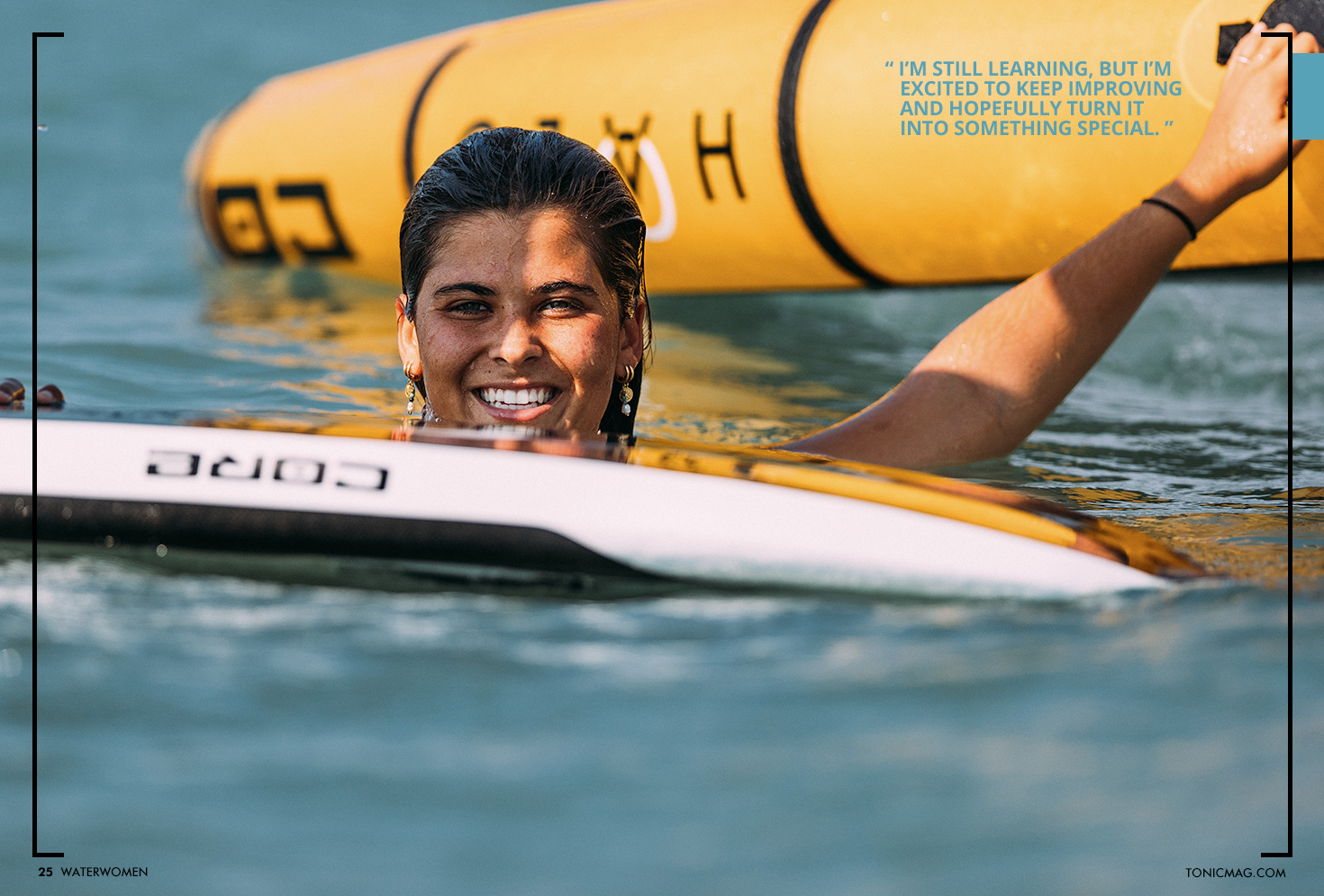 Thank you for featuring me as your Waterwomen in this issue. So, I was born in Portugal but grew up my whole life in Boa Vista, which is a small island in Cape Verde. Being raised there, you’re surrounded by water all the time, so you kind of get pushed into watersports naturally. I started super young, just surfing with my friends in the bay. It was just part of everyday life.