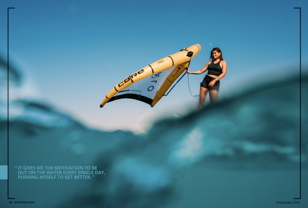 This issue’s Waterwoman, Luana Alua, grew up in the turquoise waters of Boa Vista, and it shows! From wave riding to wing foiling and now filming her journey behind the scenes, she’s carving her path with power, style, and soul.