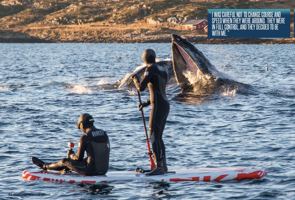 In 2011 I tried to ride with the orcas when we were making a TV program, at this time I did not manage it. We did a lot of research with whale experts, and they all told me the whales don't feel threatened by human interaction at this level. When I was out there with them on this trip, I thought about this and was making sure I didn't go to them. It was the whales coming to me, and I was careful not to change course and speed when they were around. They were in full control, and they decided to be with me.