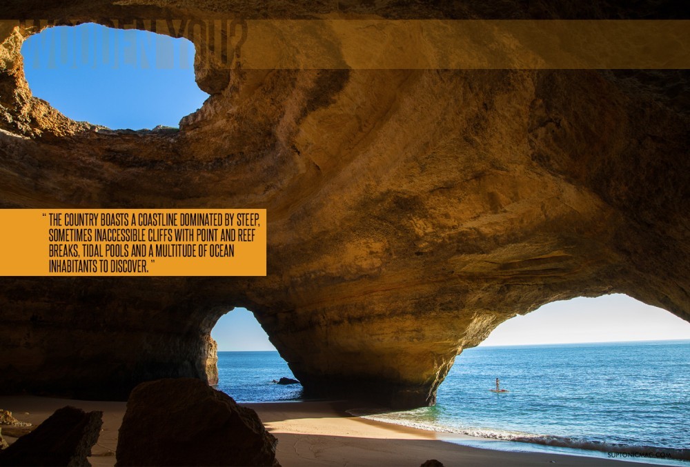 It certainly didn’t disappoint; Portugal is not just salted cod, port and sardines.  The country boasts a coastline dominated by steep, sometimes inaccessible cliffs with point and reef breaks, tidal pools and a multitude of ocean inhabitants to discover.  We decided to point the van straight down the middle of the country, through rolling vineyards and olives trees perfect for culinary pit stops, our eyes set on the southern most town of Faro with warmer days and calm waters.