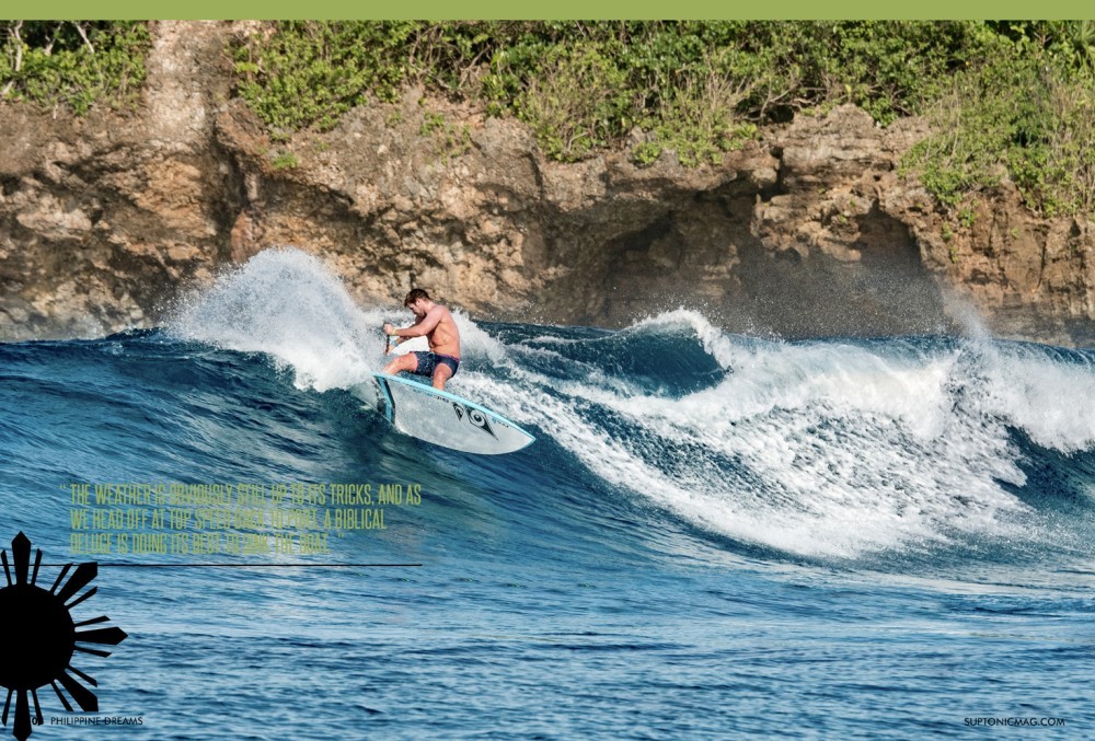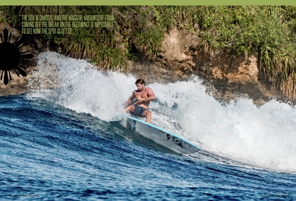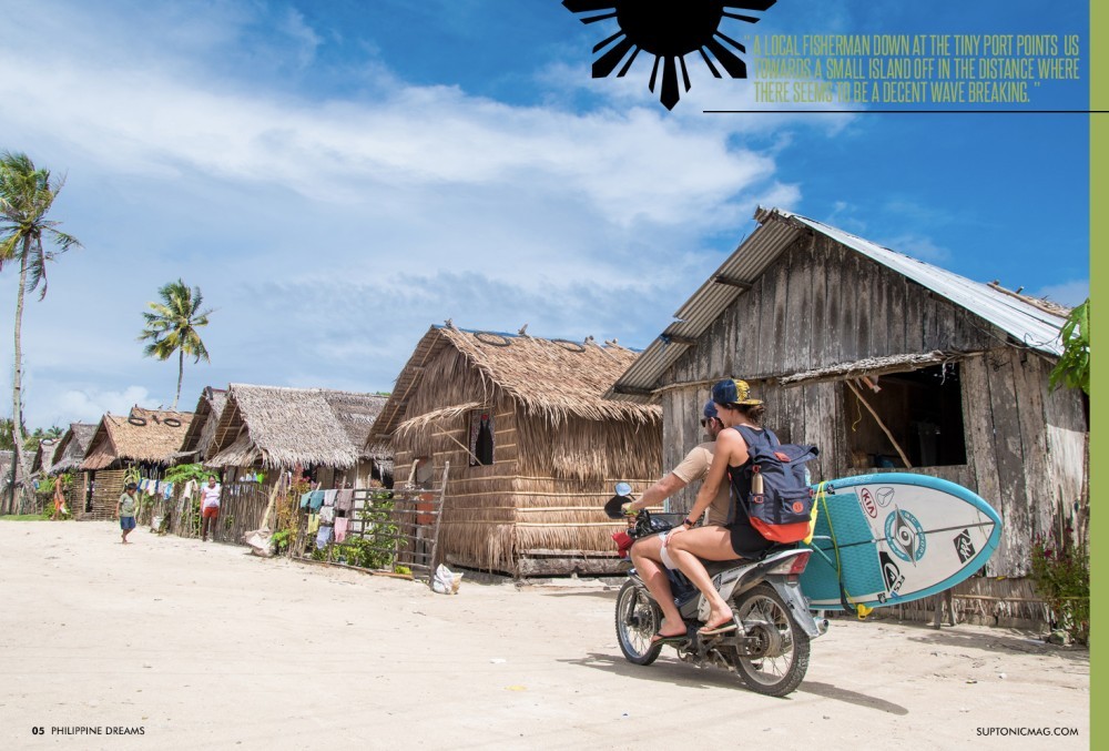 “A serious swell has come in during the night, I think it’ll be too big for where we were yesterday,” says Alexis after a few minutes studying the coral reef just below our bungalow. We decide to go and test some of the spots on the south coast, taking the road to the port of General Luna. 30 minutes of boat ride later under a joyful sky, our enthusiasm drops when we arrive in front of a spot full of heavy swell and waves slashing in every direction over the reef.
