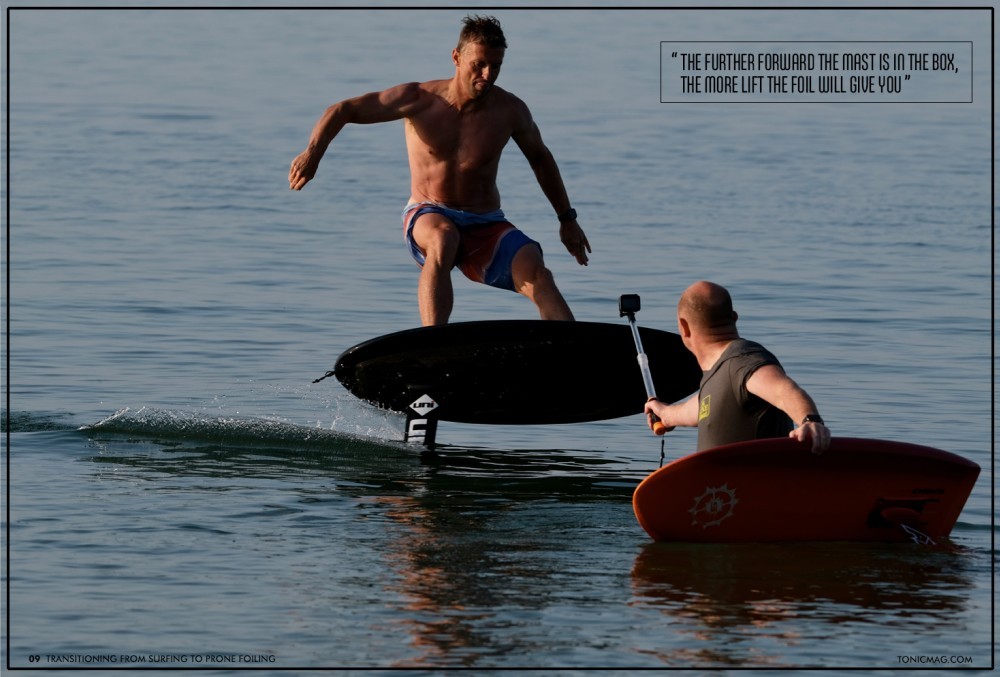Basically, the further forward the mast is in the box, the more lift the foil will give you. It also effectively ‘shortens’ the board which can be really helpful for pumping. The high aspect foils need to be as far forward as possible in the box. Low aspect foils might need to be all the way back when you’re learning, as if they’re too far forward they can over-lift as you’re trying to get to your feet. I used to take a key in the water with me so I could adjust it easily and experiment what worked the best.