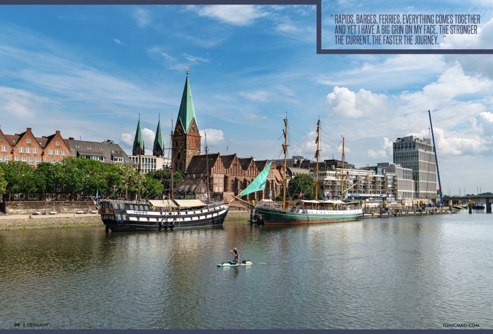 Unfortunately, I only read as far as point two. Tiredness and impatience take their toll. So shortly after the gate opens I paddle into the small channel and shoot down with the wave. Unfortunately, my board is faster than the water and so I hear the fin scratching on the ground at some point and shortly before I reach the bottom I hear nothing at all. I feel briefly and thus get me the confirmation of what I have guessed. My borrowed spare fin is now also gone and I have to find fourth fin. The remaining 15 km to Nienburg I paddle now without. The board turns back and forth, I use more power to keep the course instead of making progress. Shortly after Nienburg I meet a dedicated stand-up paddler who spontaneously lends me his spare fin, so that I can start the following day with complete equipment in the direction of Bremen.