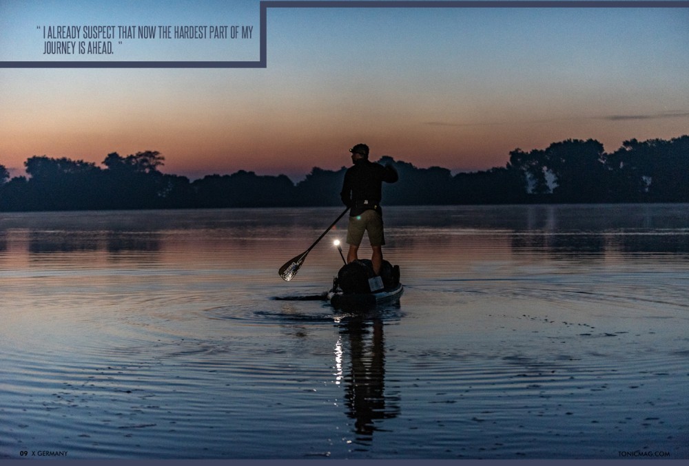 The start goes according to plan. Despite a small delay on the Austrian night train I am on the water at 9 o'clock to start my journey. It seems completely unreal to me that I will travel over the next 3 weeks only with this board, paddle stroke after paddle stroke heading North. If I had known about the challenges that awaited me, I would probably have gotten back on the train home. Unsuspecting, however, I set off for the first few meters. The Rhine has a current and pushes me 6km to the North, to the first weir in Märkt.