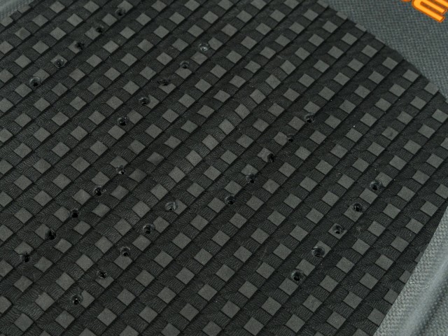 Comfort and control are prioritized with a high-quality EVA deck grip, catering to both strapped and strapless setups. The foot straps are notable for their versatility—they can be configured in numerous positions and are made from soft foam and neoprene to ensure comfort. They can also be pressed flat to minimize interference while paddling.