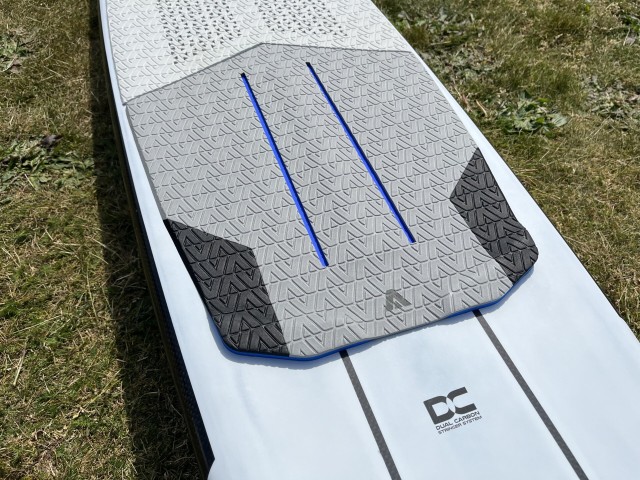 They’ve also updated the outline and created fuller rails, which should lead to better stability and paddle power. Subtle volume distribution, a flatter deck, and more rounded rails should also allow you to move your feet and lean into turns more confidently, which is essential when flying downwind at speed.