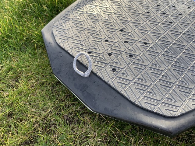Interestingly, the WKT is so thin that a conventional leash plug is too big to fit in the tail of the board! Armstrong have simply put a small hole through the board itself and used a large knot on the other side of the leash. A simple solution that is really effective.
