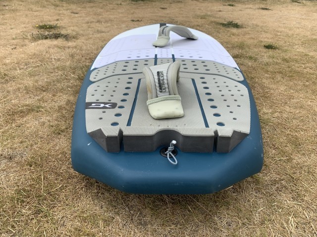 Cabrinha has carefully designed the shape of the hull to allow easy starts, with a double concave hull & kick tail with aggressive release channels. It has bevelled rails with a hard release edge. All aiming to allow earlier flight. The board features a full Dakine deck pad & has foot strap inserts with multiple angles to allow 2 or 3 strap configurations. It also has a handle on the hull, not essential on a sinker board I feel but actually, something I found really useful, just making carrying your kit around that much easier.