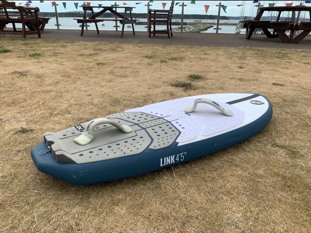Fortunately, the Link has it spot on, the main proportion of buoyancy is slightly forward of centre, which makes getting to your knees possible. Then once to my feet and starting to pump, it was clear that the hull shape mentioned above, particularly the double concave, meant that the board released off the water and I got on foil quickly.