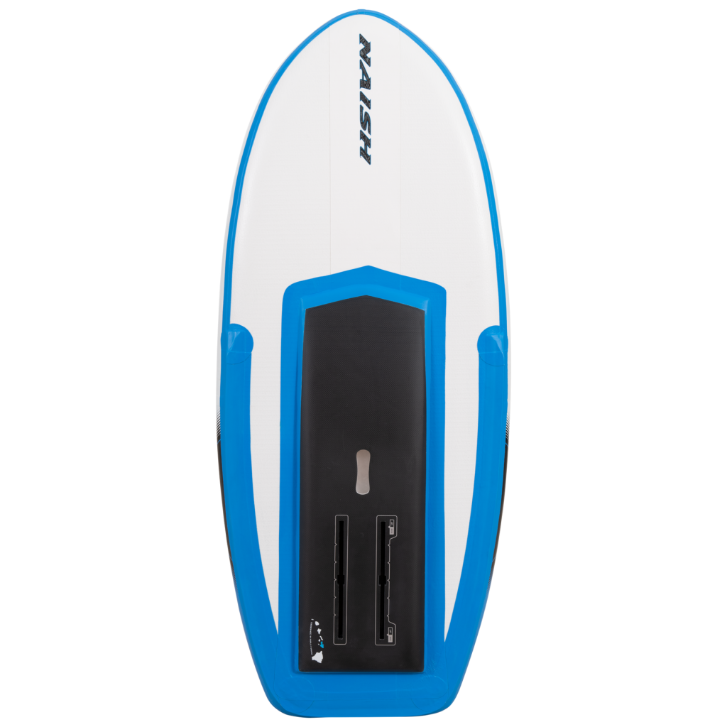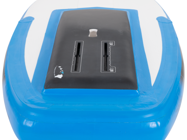 One of the key design elements of the Hover Inflatable is the segmented Diamond Diecut EVA Pad with Micro Dot Embossing. This innovative deck pad eases the process of folding and packing the board, making it incredibly convenient for travel purposes. Additionally, the Hover Inflatable features a Carbon Plate Foil Track System with (2) 10” US Boxes. This high-density PVC foil track system expedites your transition onto the fin or the foil, ensuring a seamless and quick setup.