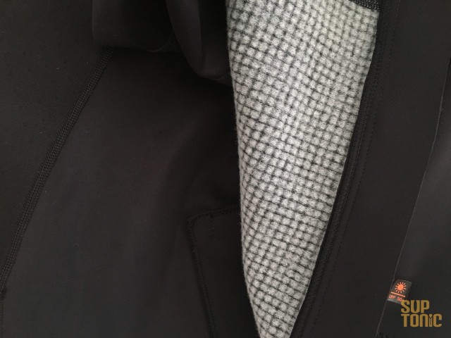 On the inside, there is a Zodiac lining which is a fleecy material that adds extra warmth. Being able to unzip the front helps to regulate the temperature as you warm up and the jacket also packs down quite small so you can easily fit it in a small dry bag on your board. The mobility in the arms and shoulder area is fantastic thanks to the flexible nature of the neoprene and the cut of the jacket.