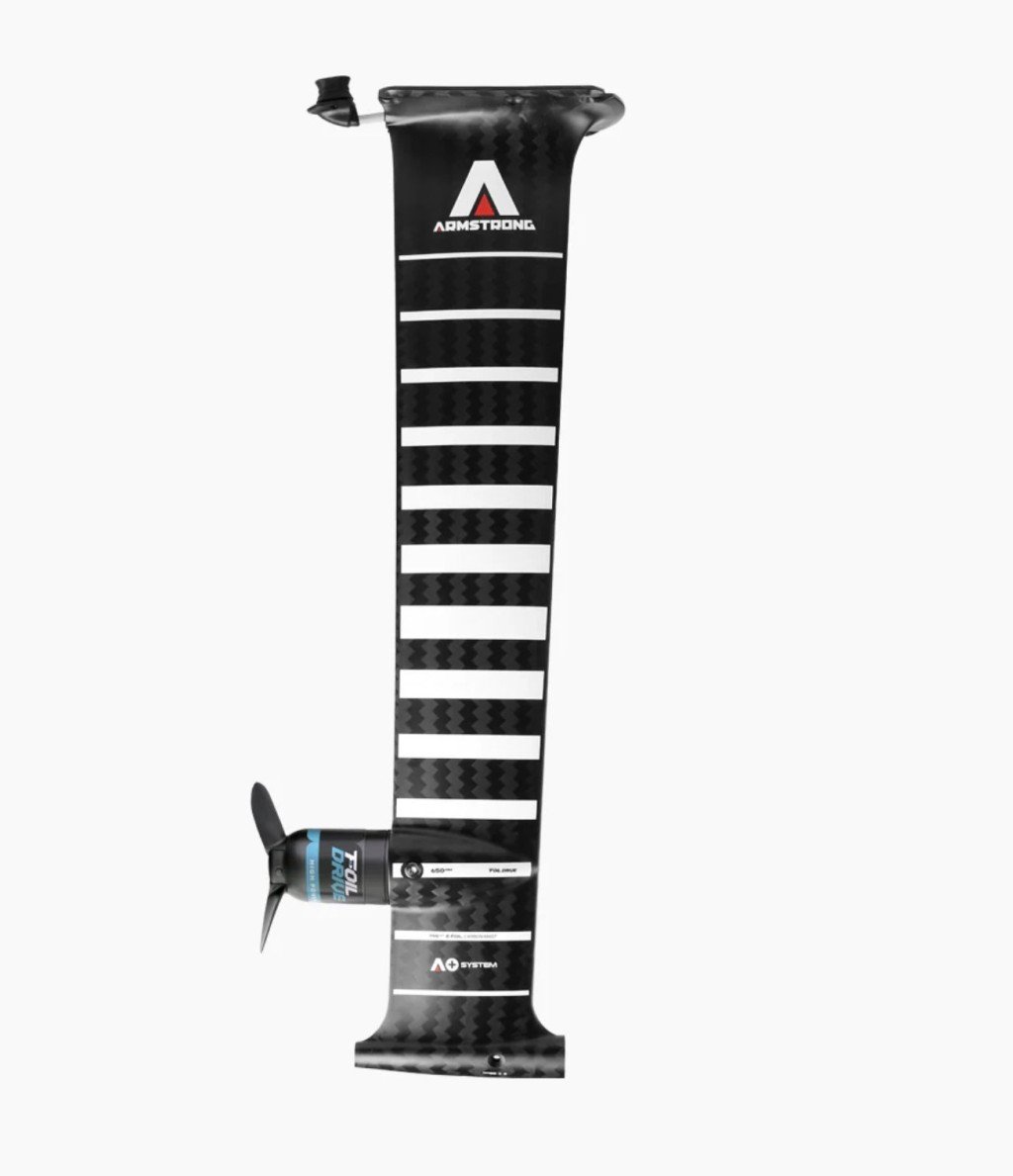 The Foil Drive E-Foil Integrated Carbon Mast, a collaboration between Armstrong and Foil Drive, offers an exceptional foiling experience, allowing users to effortlessly navigate harbors and explore coastlines even on windless days. Its design reflects Armstrong's commitment to precision and performance, making it a high-quality option for both beginners and seasoned riders.