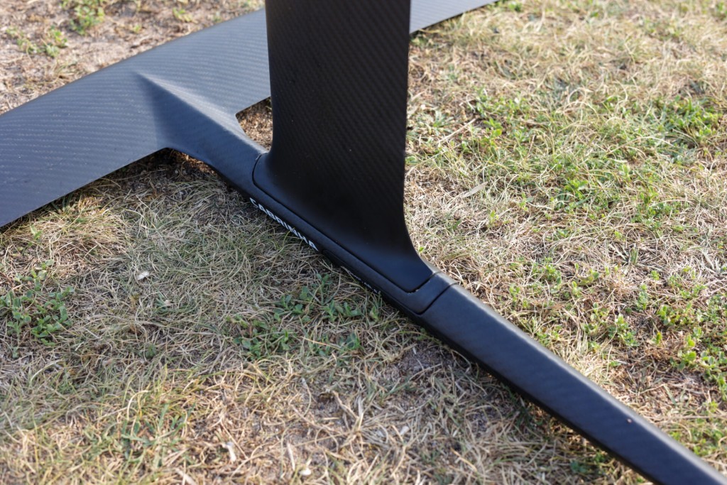 The result is one of the cleanest, most user-friendly assembly systems on the market. The front wing and tail are both monoblock pieces, bolting together via a short bolt to make a two-piece plane, and then attaching to the mast with just two bolts. If you leave the front and tail joined, you only need to fasten two bolts to be on the water. It’s genuinely refreshing, especially for anyone used to travelling with a bag full of bolts, shims, washers, and multiple Torx bits.
