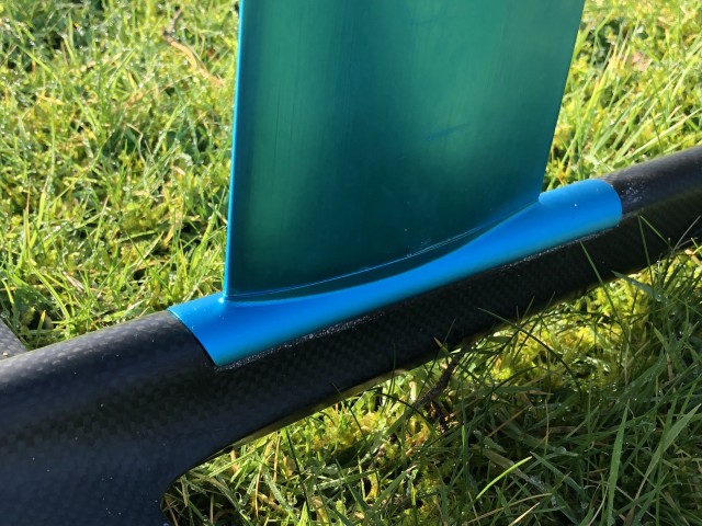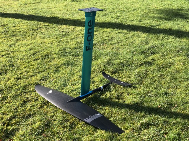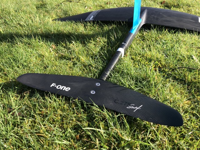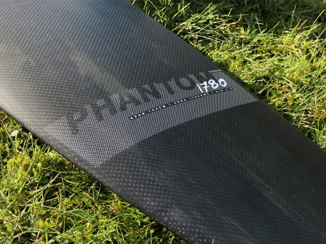 The Phantom Carbon is new for this year, there are four sizes to choose from, we have the largest of the wings on test here, the 1780. Constructed using their Monobloc technology with pre-preg carbon the foils are really light but also very strong. The front wing has a built-in moulded half fuselage that marries to the tail and bolts through to the mast. This means there are no holes or bolts in the front wing, which massively increases the strength. The finish is incredible and everything fits together with no discernible gaps or manufacturing errors. We tested the set up with the aluminium mast, but there are carbon options too. The stainless steel bolts are of a very high quality and where they meet aluminium F-ONE have used heli-coils to ensure there are no corrosion issues but also so there is a strong connection.