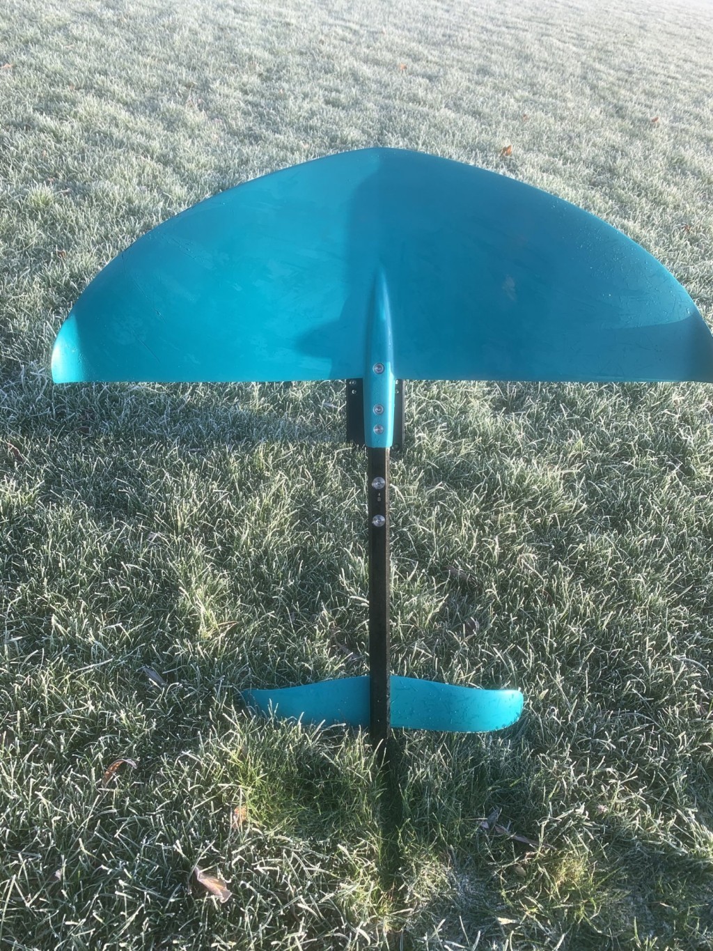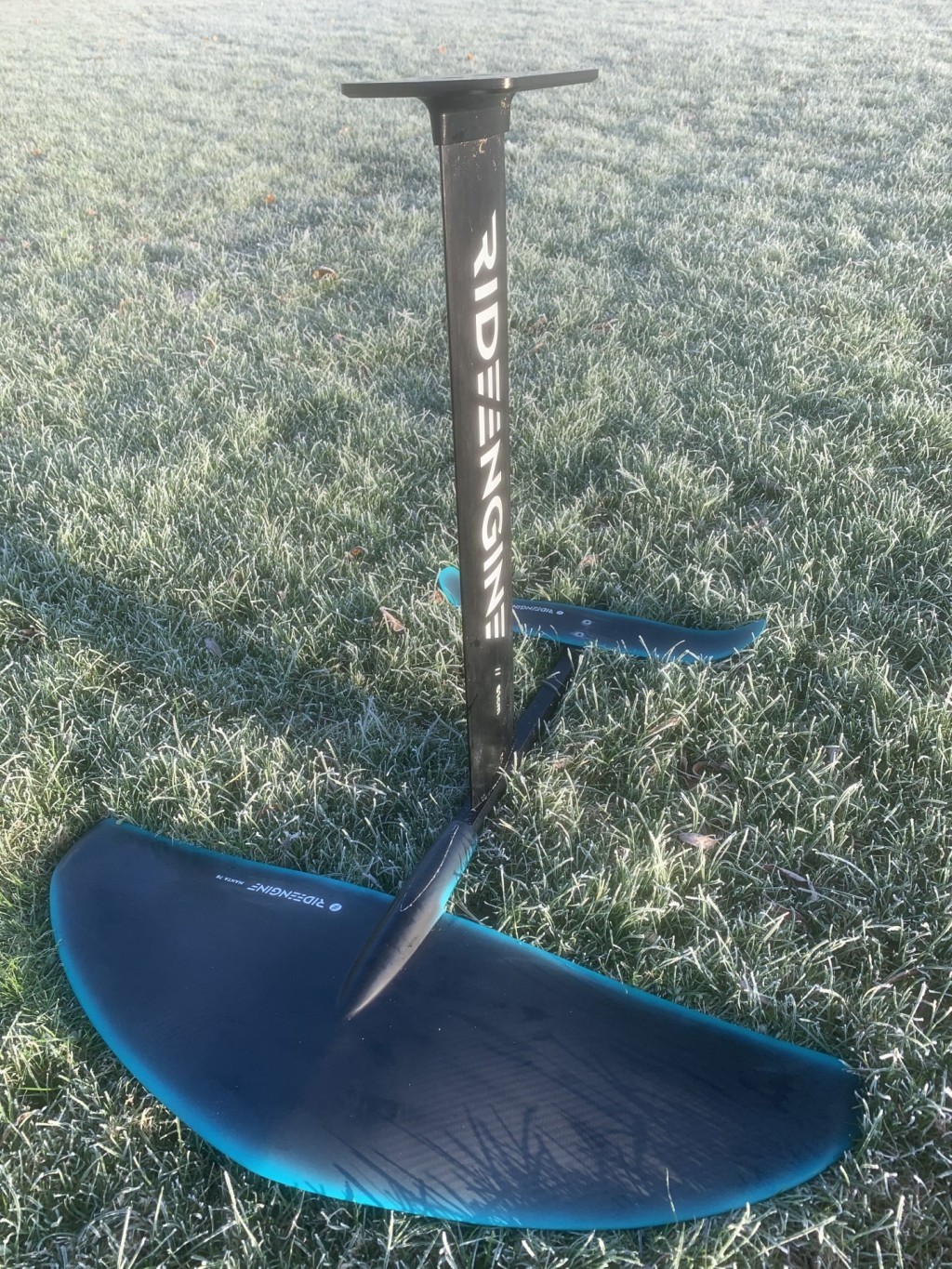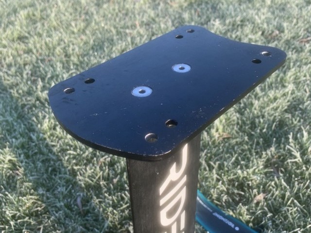 This package comes with two different mounting options for the mast, forward over the wing and central over the fuselage. This drastically changes the position of the foil under your board and therefore gives you lots of options to get the setup just right for you. I have been using it with the mast-mounted over the fuselage for winging; I believe when surf foiling the mast may be better being mounted over the front wing.