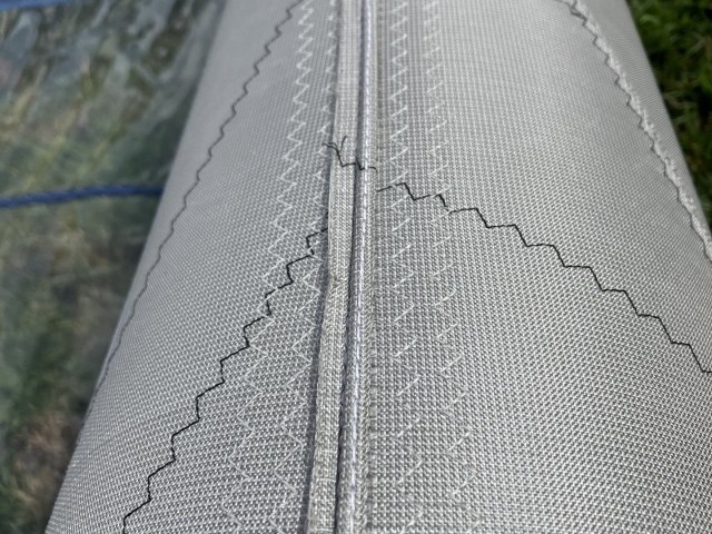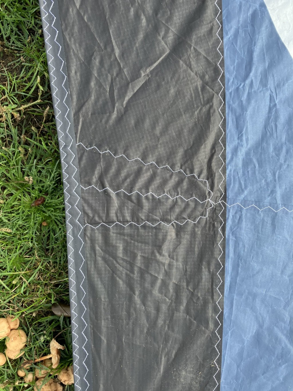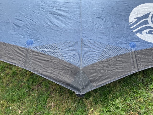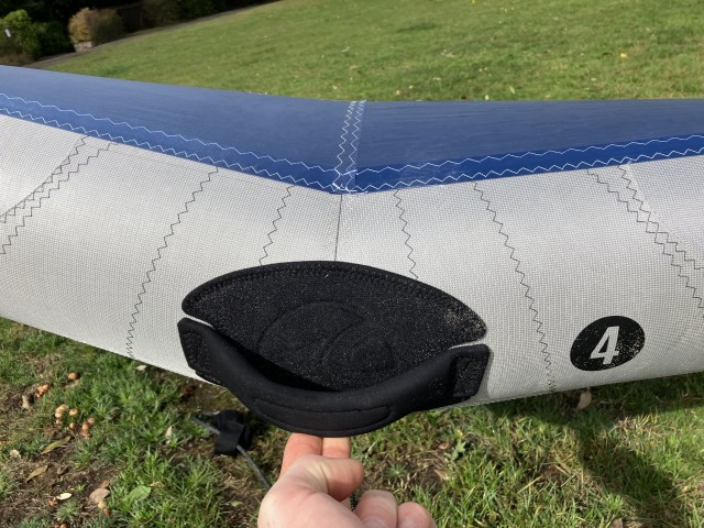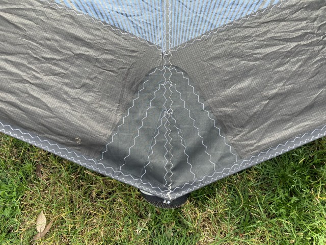 Cabrinha’s ULTRA HP material has a very distinctive look and feel, which is quite satisfying. It shares the same efficient leading edge segment seam protection layout as the regular Mantis. These are very streamlined and only placed closer to the wingtip on the critical segment seams to reduce unnecessary weight addition. The canopy layout is similar to load path seam placements and the load distribution layout near the tail of the strut. The Mantis Apex features more significant trailing edge reinforcement, as it features a combination of EVA TE battens and traditional rigid composite battens.