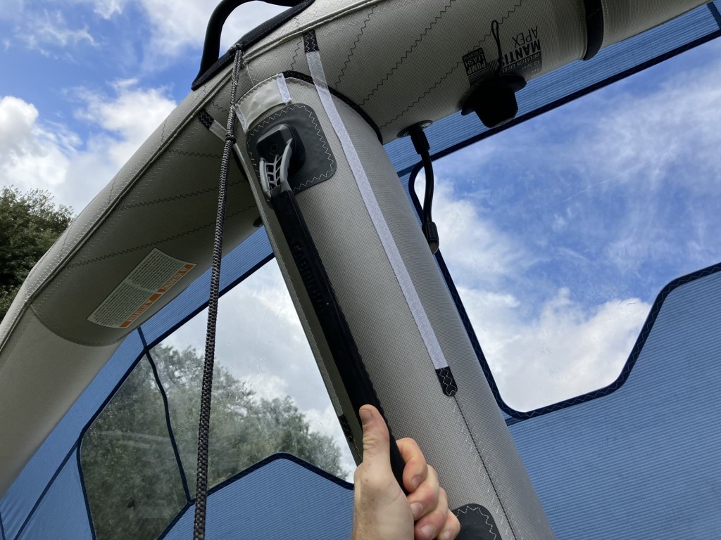 First, I don’t think I’ve ever looked down to plug in my pump to the inflating nozzle of a wing to see a recommended inflation pressure of 13.5 psi! If you are going to get your hands on the new Apex, you’d better budget for a pump with it unless you’ve got an iSUP pump on hand already! The super high inflation pressure is possible thanks to the new ULTRA HP airframe. Both the leading edge and the strut use a new lightweight laminate material that is extremely strong. This high-strength airframe allows for increased inflation pressures, which allows for reduced diameter leading edge and strut. In this case, it is approximately 20% smaller. The leader edge diameter reduction is very noticeable.