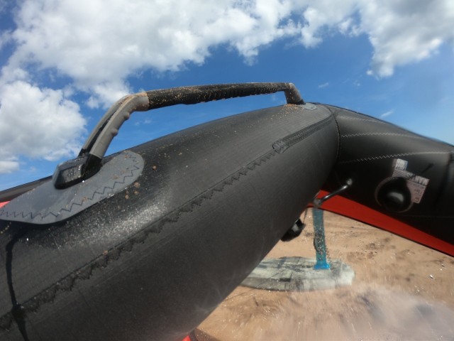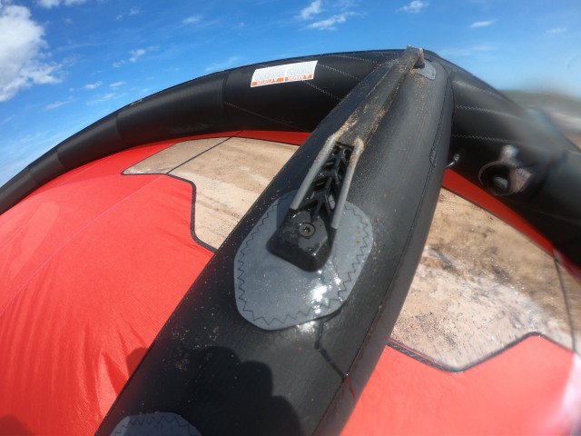 Each wing comes with the handles packed separately in the bag for efficient shipping and also includes handle riser adjusters, which are like washers to fine tune the height of attachment of the handle to the strut (and therefore the angle of the whole handle if you use a riser on one end and not the other). The already ergonomic design, along with the adjustability, should please all users. The depower handle has also had a rework. Cabrinha now calls it the ‘pure impulse front handle’. It is semi rigid (stiffer than the V2) and definitely allows you to give the wing more input from the wrist while flagging to put the Mantis exactly where you want it.