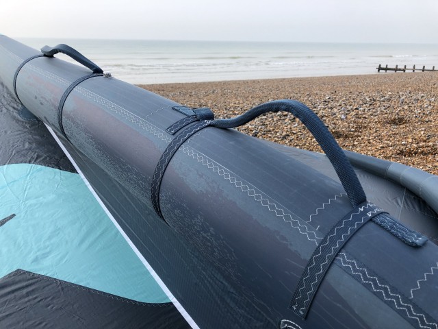 Featuring a noticeably more structured canopy layout and frame make, up the wing is designed to be a lot stiffer than the Swing. It features a deeper dihedral too, which is there to increase stability on the wave. The final major feature of note are the double, long handles, rather than the multiple options on the Swing. A really nice touch is a dump valve on the centre strut and an enlarged one pump tube to make set up and pack down a breeze.